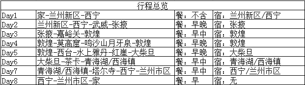 两种出行方案:西宁抵达客人当天动车/汽车到兰州或隔天早上动车/汽车抵张掖。隔天到张掖的客人不参观雷台公园,免费景点,不退不换。