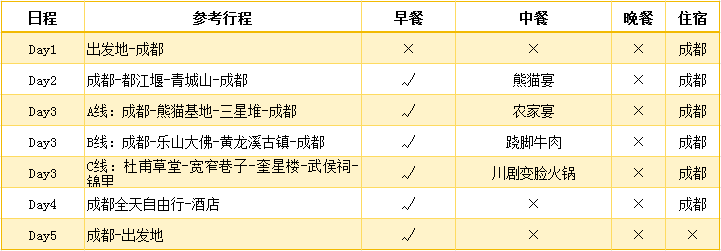 【用餐】成都晚餐不统一安排,请提前备好,或自行安排。