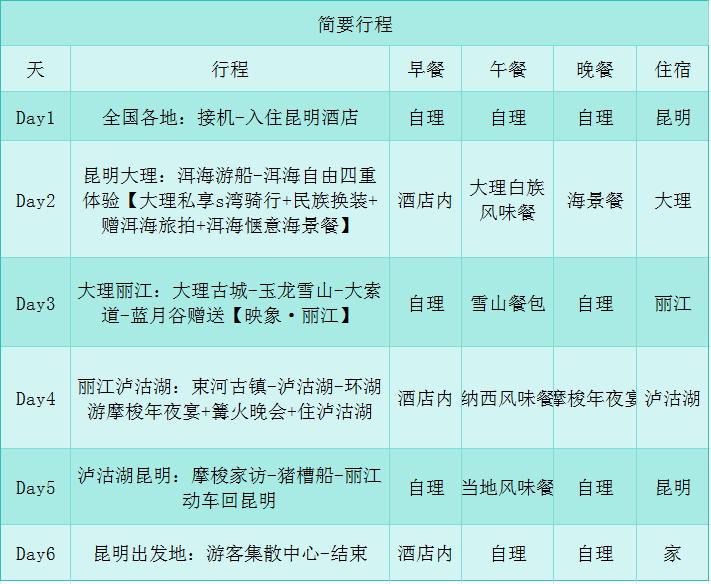 宜昌到云南大理/昆明/丽江/泸沽湖的具体行程