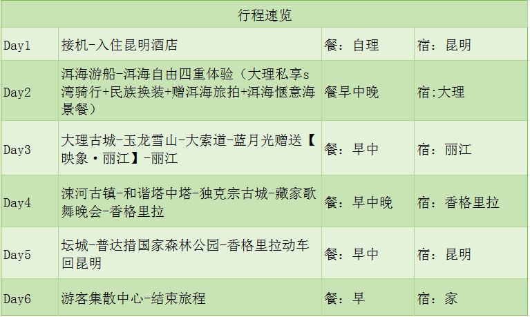 宜昌到云南昆明+大理+丽江+香格里拉6日具体行程