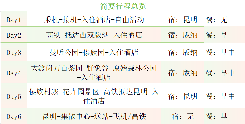 【用餐】:全程用餐5早3正(早餐为酒店免费提供,错过早餐时间费用不退)正餐40元/人/餐,象餐、孔雀宴 特别升级-曼傣萨森泼水宴(餐不吃不退费)
