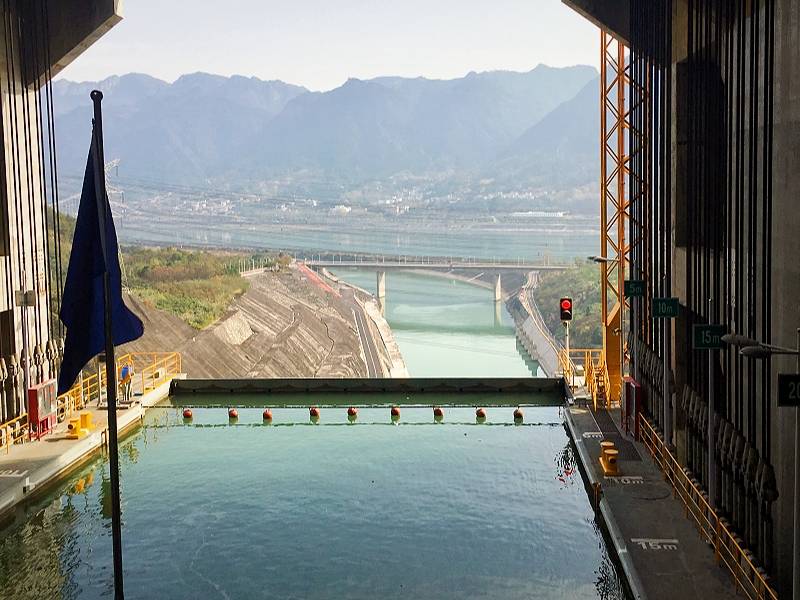 11:00 乘“长江三峡”系列豪华观光游轮,船过世界上最大的“三峡升船机”,升船机最大提升高度是113米,体验下水净船乘百米“升船电梯”过三峡大坝的震撼感受,领略“高峡出平湖,当惊世界殊”的壮丽画卷。
