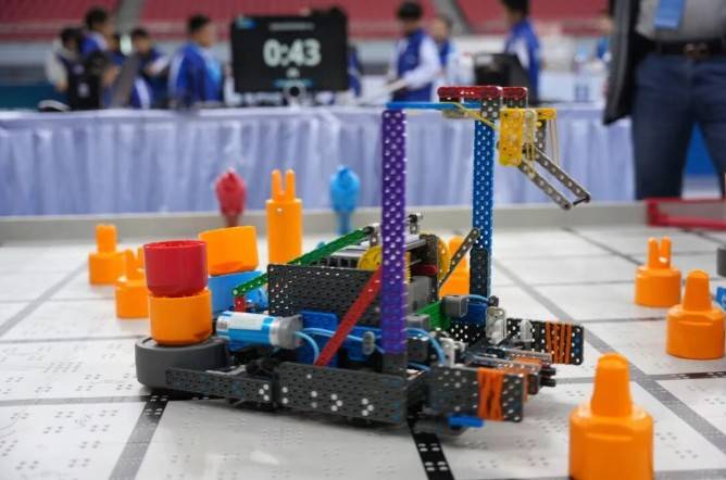 来自广东碧桂园学校805班的王璟龙和队友参加了当天VEX VRC狭路相逢赛项并成功“出线”。“比赛要求选手在赛前编写程序,前15秒为自动程序运行,后1分45秒转为手动操控机器人得分。”他认为,团队协作是比赛中最大的挑战,他们通过推选队长、由队长分配任务的方式来协同作战。